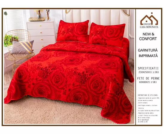 Cuvertura din catifea nu este doar frumoasă din punct de vedere estetic, ci și confortabilă. Ea oferă o senzație plăcută la atingere și te învăluie într-un somn relaxant. Astfel, acest set reprezintă nu doar o alegere de design sofisticată, ci și o investiție în confortul și calitatea somnului tău.