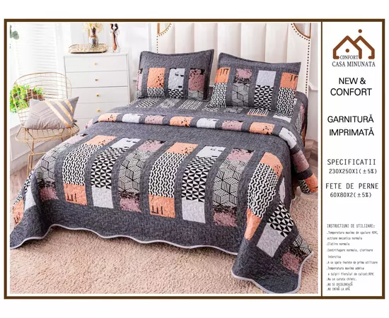 Setul cu cuvertură pentru pat din catifea este o alegere elegantă și luxoasă pentru orice dormitor. Acest set include o cuvertură moale și matasoasă din catifea, care adaugă o notă de rafinament și confort suprem în camera ta. Catifeaua este cunoscută pentru textura sa fină și aspectul său strălucitor, ceea ce face ca acest set de cuvertură să fie atât de atractiv vizual.