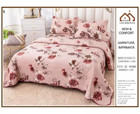 Cuvertura din catifea nu este doar frumoasă din punct de vedere estetic, ci și confortabilă. Ea oferă o senzație plăcută la atingere și te învăluie într-un somn relaxant. Astfel, acest set reprezintă nu doar o alegere de design sofisticată, ci și o investiție în confortul și calitatea somnului tău.
