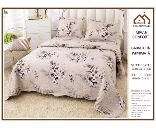 Setul cu cuvertură pentru pat din catifea este o alegere elegantă și luxoasă pentru orice dormitor. Acest set include o cuvertură moale și matasoasă din catifea, care adaugă o notă de rafinament și confort suprem în camera ta. Catifeaua este cunoscută pentru textura sa fină și aspectul său strălucitor, ceea ce face ca acest set de cuvertură să fie atât de atractiv vizual.