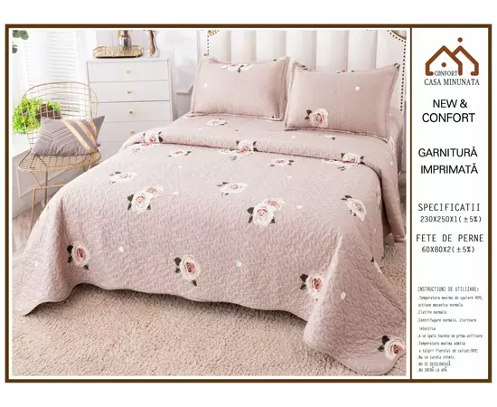 Cuvertura din catifea nu este doar frumoasă din punct de vedere estetic, ci și confortabilă. Ea oferă o senzație plăcută la atingere și te învăluie într-un somn relaxant. Astfel, acest set reprezintă nu doar o alegere de design sofisticată, ci și o investiție în confortul și calitatea somnului tău.