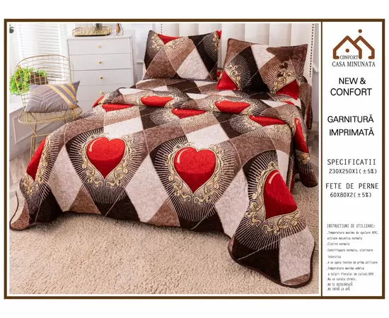 Cuvertura din catifea nu este doar frumoasă din punct de vedere estetic, ci și confortabilă. Ea oferă o senzație plăcută la atingere și te învăluie într-un somn relaxant. Astfel, acest set reprezintă nu doar o alegere de design sofisticată, ci și o investiție în confortul și calitatea somnului tău.
