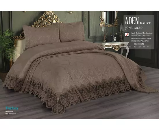 Set cuvertura de pat + 2 fete de Perna din Bumbac si Dantela Cafea