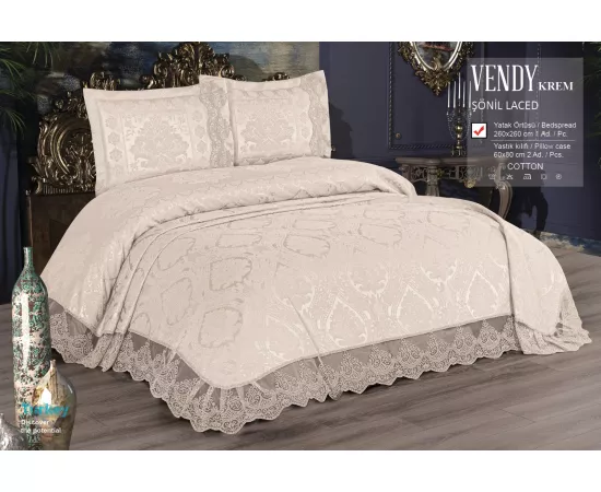Set cuvertura de pat + 2 fete de Perna din Bumbac si Dantela