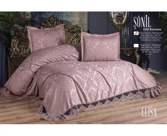 Set cuvertura de pat + 2 fete de Perna din Bumbac si Dantela