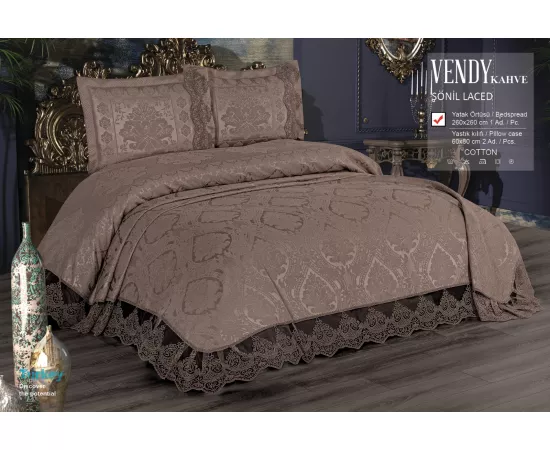 Set cuvertura de pat + 2 fete de Perna din Bumbac si Dantela