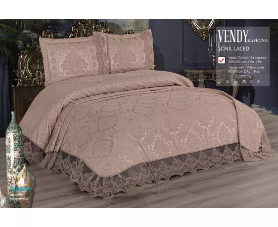 Set cuvertura de pat + 2 fete de Perna din Bumbac si Dantela