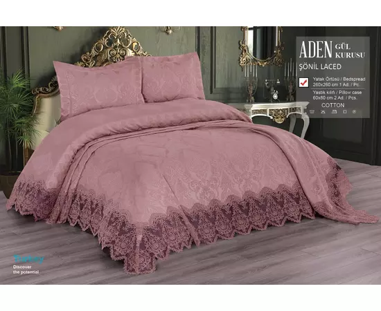 Set cuvertura de pat + 2 fete de Perna din Bumbac si Dantela Roz Inchis