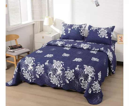 Cuvertura de pat matlasata, confectionata din bumbac tip tesatura finet.Imprimeul acestui set (cuvertura pat plus fete de perna) este realizat cu cele mai noi tehnologii - garantat nu se decoloreaza daca se respecta instructiunile de intretinere.