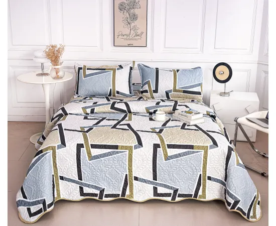 Set Cuvertura de Pat din Bumbac, 3 Piese cu Model - PIT181