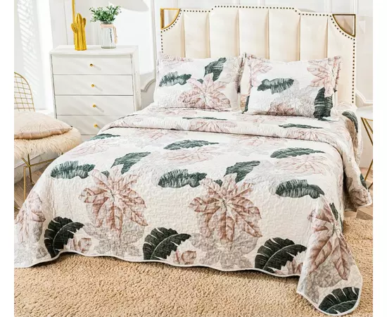 Cuvertura de pat matlasata, confectionata din bumbac tip tesatura finet.Imprimeul acestui set (cuvertura pat plus fete de perna) este realizat cu cele mai noi tehnologii - garantat nu se decoloreaza daca se respecta instructiunile de intretinere.