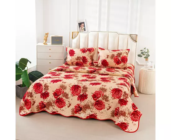 Cuvertura de pat matlasata, confectionata din bumbac tip tesatura finet.Imprimeul acestui set (cuvertura pat plus fete de perna) este realizat cu cele mai noi tehnologii - garantat nu se decoloreaza daca se respecta instructiunile de intretinere.