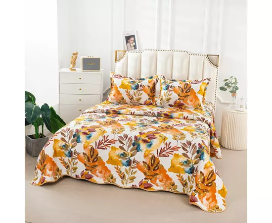 Cuvertura de pat matlasata, confectionata din bumbac tip tesatura finet.Imprimeul acestui set (cuvertura pat plus fete de perna) este realizat cu cele mai noi tehnologii - garantat nu se decoloreaza daca se respecta instructiunile de intretinere.
