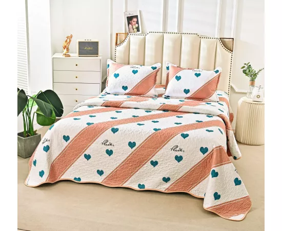Cuvertura de pat matlasata, confectionata din bumbac tip tesatura finet.Imprimeul acestui set (cuvertura pat plus fete de perna) este realizat cu cele mai noi tehnologii - garantat nu se decoloreaza daca se respecta instructiunile de intretinere.