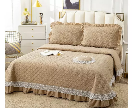 Set Cuvertura de Pat din Bumbac, 4 Piese, Bej - PIT156