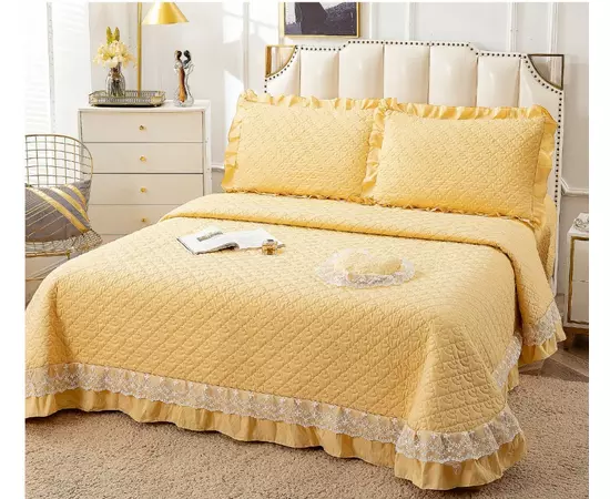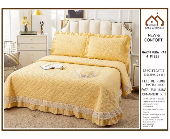 Set Cuvertura de Pat din Bumbac, 4 Piese, Galben - PIT164
