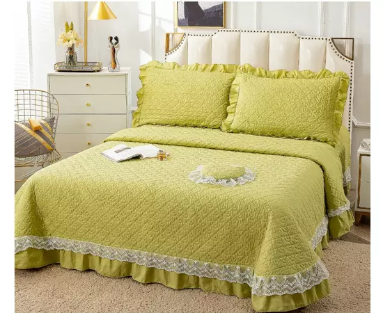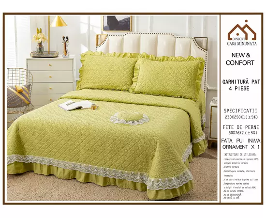 Set Cuvertura de Pat din Bumbac, 4 Piese, Verde Lime - PIT163