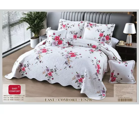 Cuvertura Pat din Bumbac este compusa din 5 piese si este realizata din bumbac 100%. Cuvertura de pat este rezistenta la spalari repetate. Pernele decorative creaza senzatia de confort si relaxare. Decoreaza dormitorul cu eleganta cuverturei de pat din bumbac.