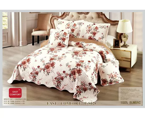 Cuvertura Pat din Bumbac este compusa din 5 piese si este realizata din bumbac 100%. Cuvertura de pat este rezistenta la spalari repetate. Pernele decorative creaza senzatia de confort si relaxare. Decoreaza dormitorul cu eleganta cuverturei de pat din bumbac.
