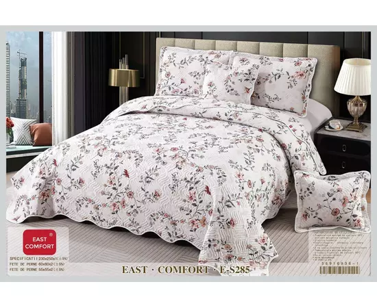 Cuvertura Pat din Bumbac este compusa din 5 piese si este realizata din bumbac 100%. Cuvertura de pat este rezistenta la spalari repetate. Pernele decorative creaza senzatia de confort si relaxare. Decoreaza dormitorul cu eleganta cuverturei de pat din bumbac.