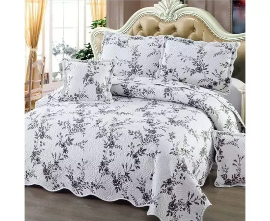 Cuvertura Pat din Bumbac este compusa din 5 piese si este realizata din bumbac 100%. Cuvertura de pat este rezistenta la spalari repetate. Pernele decorative creaza senzatia de confort si relaxare. Decoreaza dormitorul cu eleganta cuverturei de pat din bumbac.