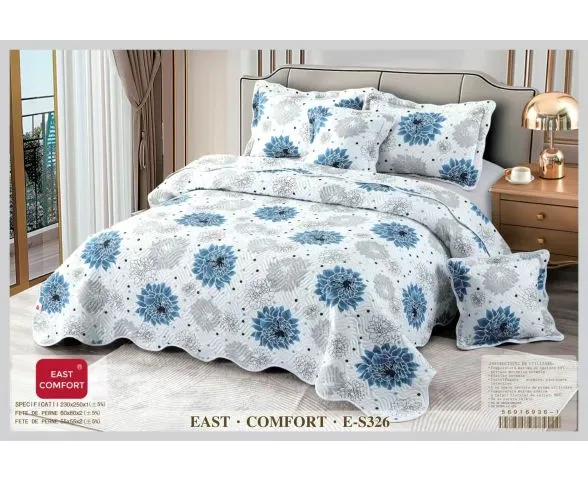 Cuvertura Pat din Bumbac este compusa din 5 piese si este realizata din bumbac 100%. Cuvertura de pat este rezistenta la spalari repetate. Pernele decorative creaza senzatia de confort si relaxare. Decoreaza dormitorul cu eleganta cuverturei de pat din bumbac.