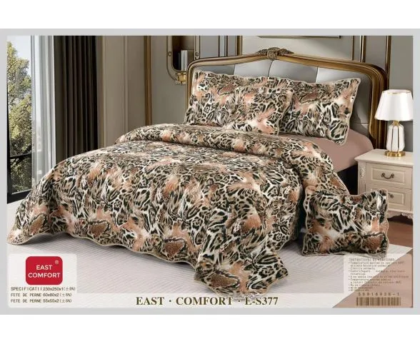 Cuvertura Pat din Bumbac este compusa din 5 piese si este realizata din bumbac 100%. Cuvertura de pat este rezistenta la spalari repetate. Pernele decorative creaza senzatia de confort si relaxare. Decoreaza dormitorul cu eleganta cuverturei de pat din bumbac.