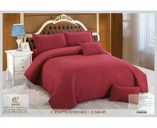 Set Cuvertura de Pat din Bumbac, 5 Piese, Grena - EAT2