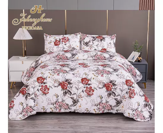 Cuvertura Pat din Bumbac este compusa din 4 piese si este realizata din bumbac 100%. Cuvertura de pat este rezistenta la spalari repetate. Pernele decorative creaza senzatia de confort si relaxare. Decoreaza dormitorul cu eleganta cuverturei de pat din bumbac.
