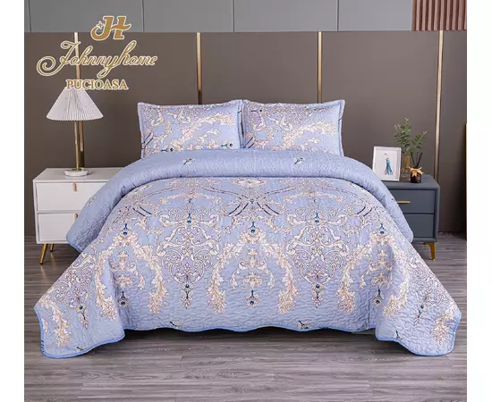 Cuvertura Pat din Bumbac este compusa din 4 piese si este realizata din bumbac 100%. Cuvertura de pat este rezistenta la spalari repetate. Pernele decorative creaza senzatia de confort si relaxare. Decoreaza dormitorul cu eleganta cuverturei de pat din bumbac.