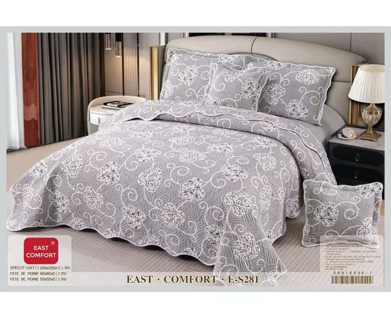 Cuvertura Pat din Bumbac este compusa din 5 piese si este realizata din bumbac 100%. Cuvertura de pat este rezistenta la spalari repetate. Pernele decorative creaza senzatia de confort si relaxare. Decoreaza dormitorul cu eleganta cuverturei de pat din bumbac.