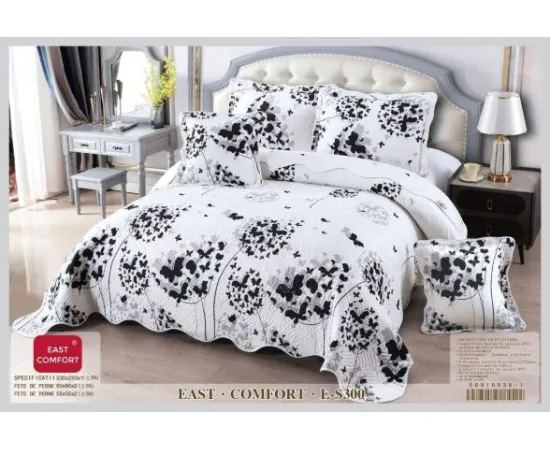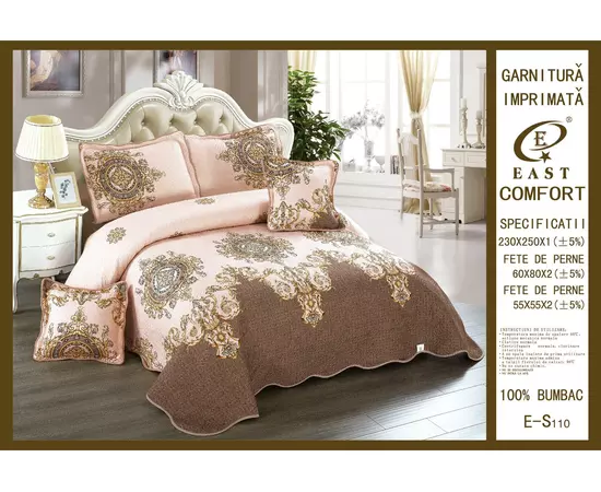 Cuvertura de pat matlasata, confectionata din bumbac tip tesatura finet.Imprimeul acestui set (cuvertura pat plus fete de perna) este realizat cu cele mai noi tehnologii - garantat nu se decoloreaza daca se respecta instructiunile de intretinere.