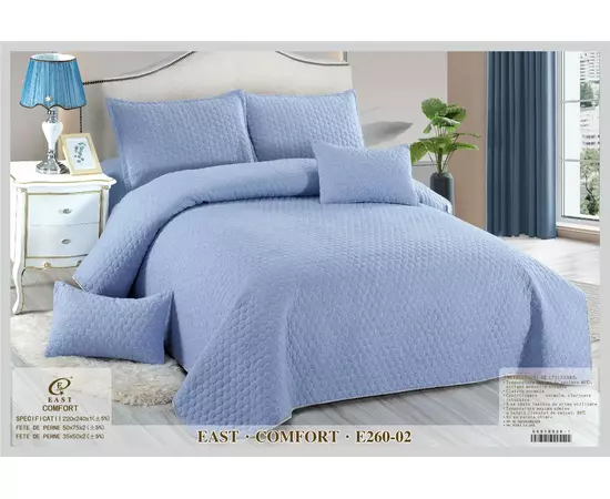 Cuvertura Pat din Bumbac este compusa din 5 piese si este realizata din bumbac 100%. Cuvertura de pat este rezistenta la spalari repetate. Pernele decorative creaza senzatia de confort si relaxare. Decoreaza dormitorul cu eleganta cuverturei de pat din bumbac.