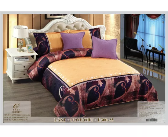 Setul cu cuvertură pentru pat din catifea este o alegere elegantă și luxoasă pentru orice dormitor. Acest set include o cuvertură moale și matasoasă din catifea, care adaugă o notă de rafinament și confort suprem în camera ta. Catifeaua este cunoscută pentru textura sa fină și aspectul său strălucitor, ceea ce face ca acest set de cuvertură să fie atât de atractiv vizual.