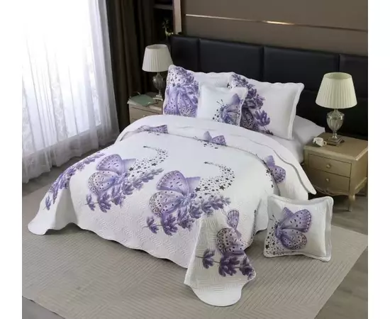 Cuvertura Pat din Bumbac este compusa din 5 piese si este realizata din bumbac 100%. Cuvertura de pat este rezistenta la spalari repetate. Pernele decorative creaza senzatia de confort si relaxare. Decoreaza dormitorul cu eleganta cuverturei de pat din bumbac.