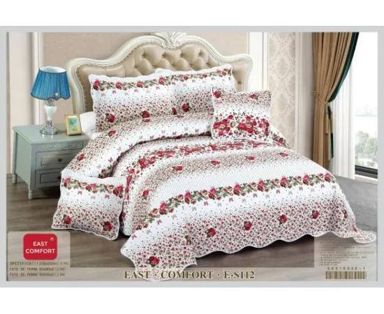 Cuvertura de pat matlasata, confectionata din bumbac tip tesatura finet.Imprimeul acestui set (cuvertura pat plus fete de perna) este realizat cu cele mai noi tehnologii - garantat nu se decoloreaza daca se respecta instructiunile de intretinere.