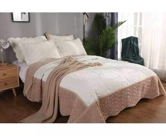 Set Cuvertura Pat Catifea cu Blanita,Cream-LIM64
