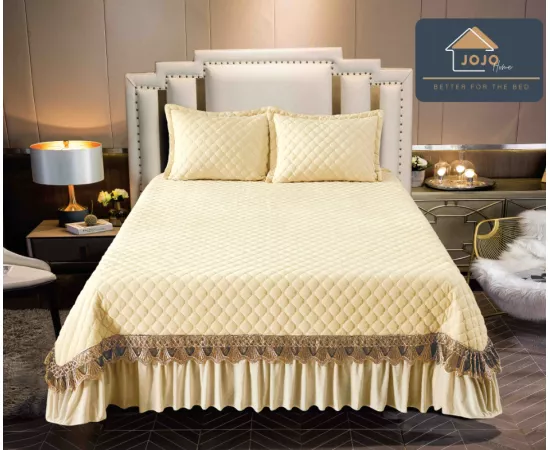 Set Cuvertura Pat Catifea -JO143 Culoare untului