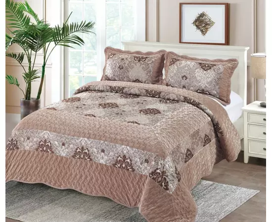 Setul cu cuvertură pentru pat din catifea este o alegere elegantă și luxoasă pentru orice dormitor. Acest set include o cuvertură moale și matasoasă din catifea, care adaugă o notă de rafinament și confort suprem în camera ta. Catifeaua este cunoscută pentru textura sa fină și aspectul său strălucitor, ceea ce face ca acest set de cuvertură să fie atât de atractiv vizual.