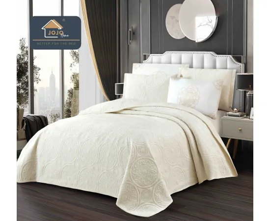 Set Cuvertura Pat Catifea, Model Relief Circular, 220x240cm, Crem - JOJ828