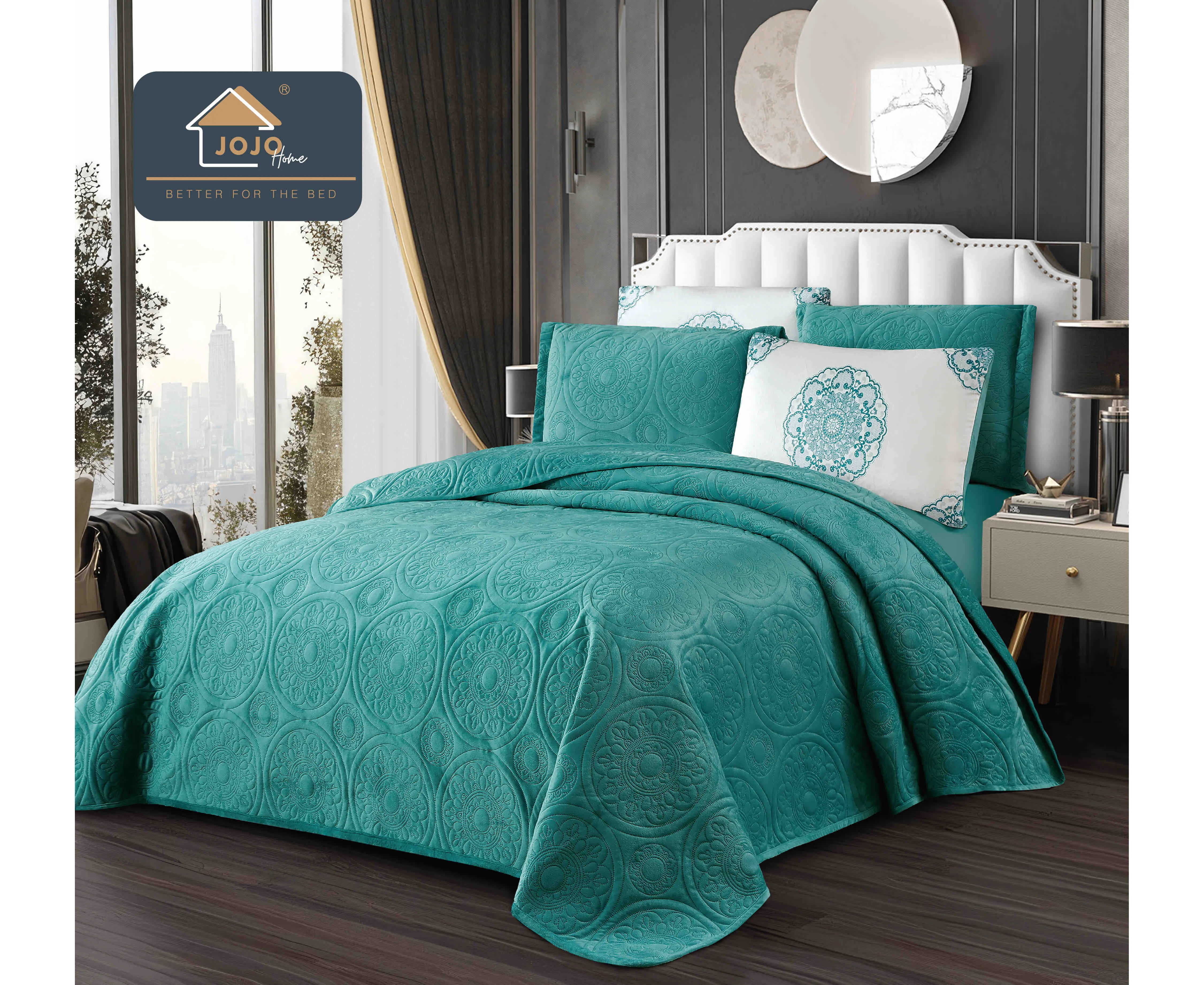 Set Cuvertura Pat Catifea, Model Relief Circular, 220x240cm, Turcoaz - JOJ820