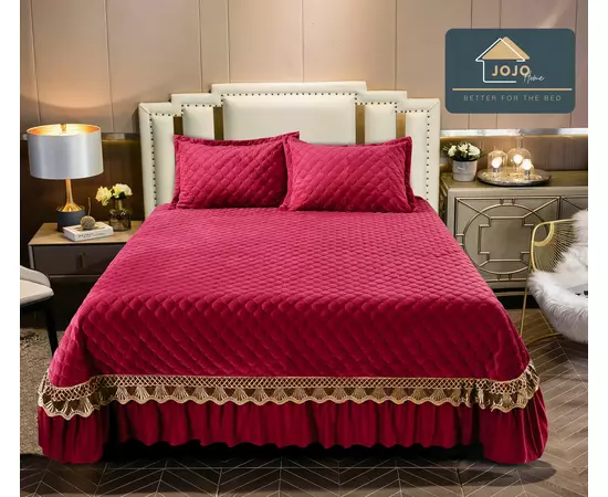 Set Cuvertura Pat Catifea -JO137 Bordo