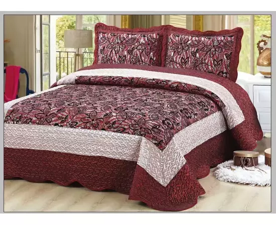Setul cu cuvertură pentru pat este o alegere elegantă și luxoasă pentru orice dormitor. Setul poate aduce un element de glamour în decorul camerei tale, iar gama sa variată de culori îți permite să alegi cu ușurință nuanța care se potrivește cel mai bine cu stilul și paleta de culori a dormitorului tău. În plus, această cuvertură poate fi folosită pentru a proteja patul împotriva prafului și uzurii zilnice.