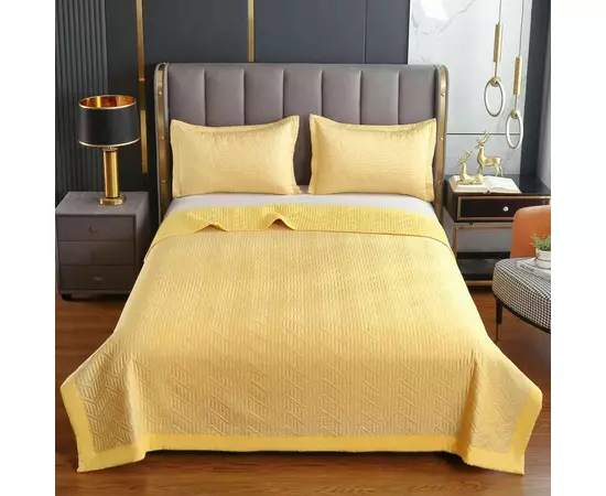 Set Cuvertura Pat din Satin, Galben - LIM165