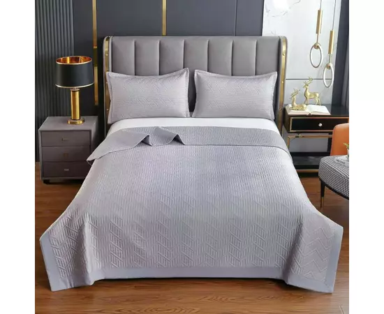 Setul cu cuvertură pentru pat este o alegere elegantă și luxoasă pentru orice dormitor. Setul poate aduce un element de glamour în decorul camerei tale, iar gama sa variată de culori îți permite să alegi cu ușurință nuanța care se potrivește cel mai bine cu stilul și paleta de culori a dormitorului tău. În plus, această cuvertură poate fi folosită pentru a proteja patul împotriva prafului și uzurii zilnice.