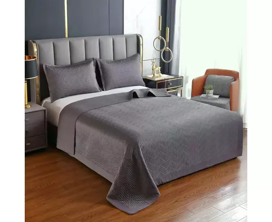 Setul cu cuvertură pentru pat este o alegere elegantă și luxoasă pentru orice dormitor. Setul poate aduce un element de glamour în decorul camerei tale, iar gama sa variată de culori îți permite să alegi cu ușurință nuanța care se potrivește cel mai bine cu stilul și paleta de culori a dormitorului tău. În plus, această cuvertură poate fi folosită pentru a proteja patul împotriva prafului și uzurii zilnice.
