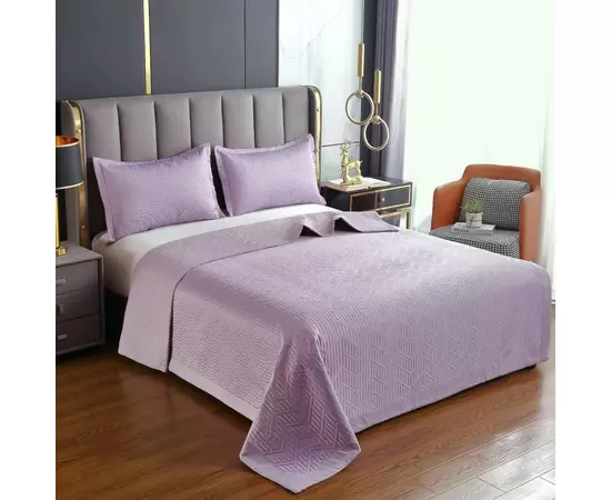 Set Cuvertura Pat din Satin, Lila - LIM158