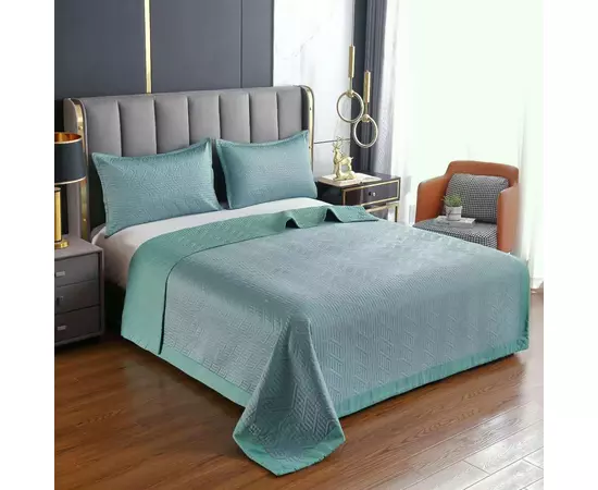 Setul cu cuvertură pentru pat este o alegere elegantă și luxoasă pentru orice dormitor. Setul poate aduce un element de glamour în decorul camerei tale, iar gama sa variată de culori îți permite să alegi cu ușurință nuanța care se potrivește cel mai bine cu stilul și paleta de culori a dormitorului tău. În plus, această cuvertură poate fi folosită pentru a proteja patul împotriva prafului și uzurii zilnice.