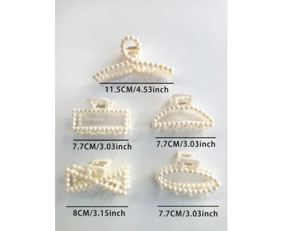 Adaugă un plus de rafinament coafurilor tale cu acest set de 5 gheare de păr elegante, decorate cu perle artificiale. Fiecare piesă este atent realizată pentru a combina funcționalitatea cu un design feminin și sofisticat, potrivit pentru orice ocazie – de la ținute casual la evenimente speciale.