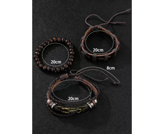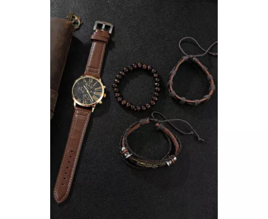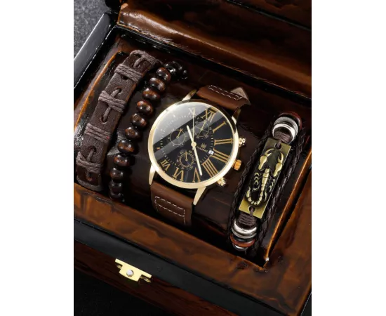 Set de Barbati cu Ceas si 3 Bratari, Maro - 49991